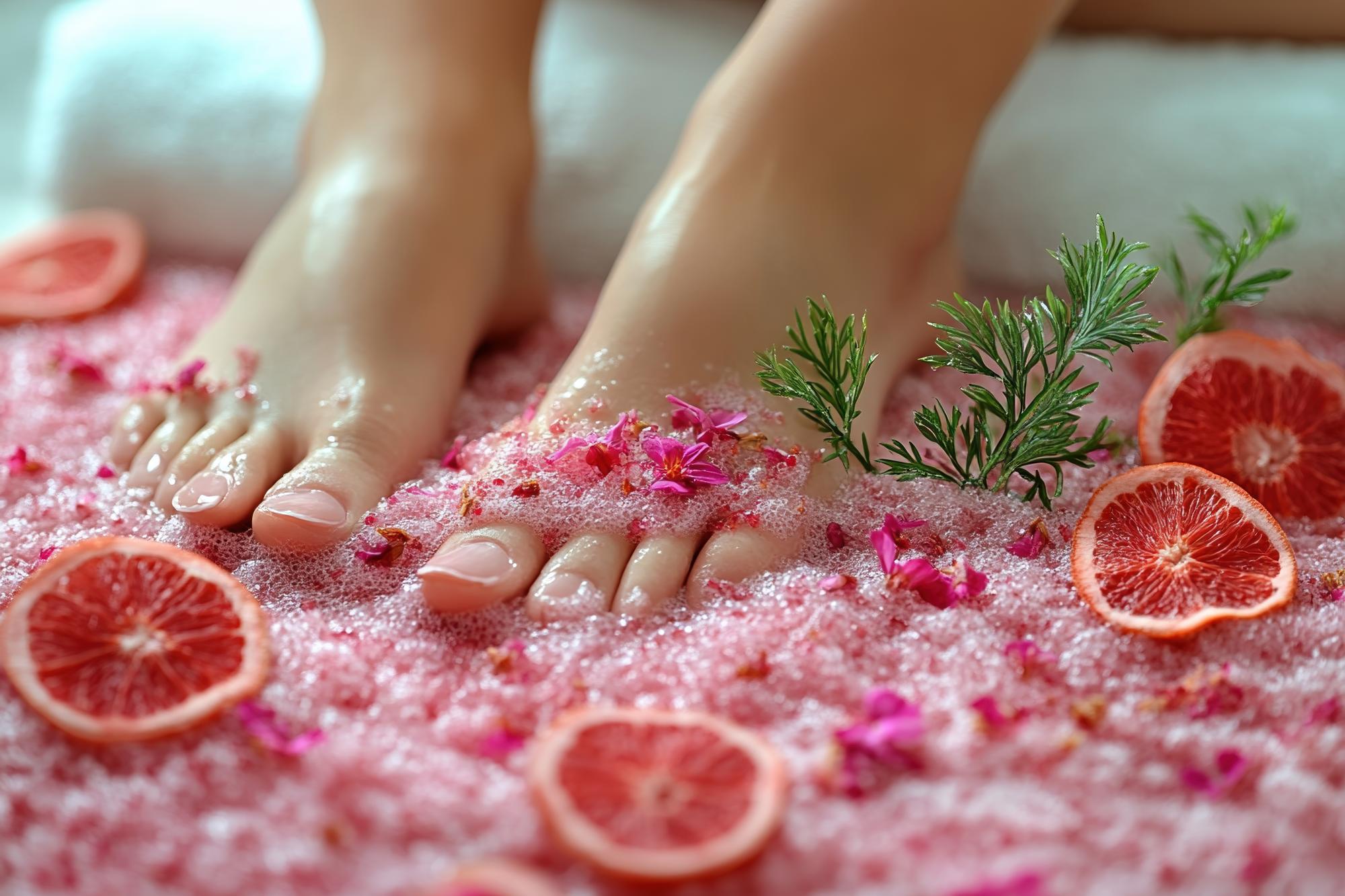 Zabieg pielęgnacyjny, obejmujący usunięcie nadmiernie zrogowaciałej skóry stóp za pomocą frezarki, wycięcie skórek oraz pielęgnację, kształtowanie